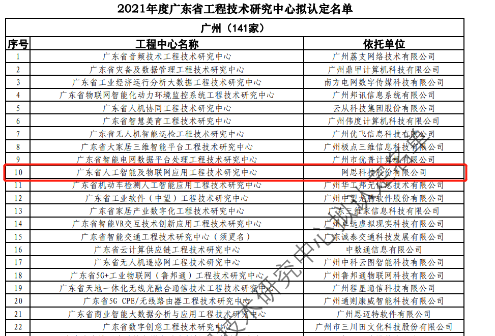 日前,广东省科技厅发布2021年度广东省工程技术研究中心名单。经过层层筛选、专家评审,依托九游·官方站网页版建设的“广东省人工智能及物联网应用工程技术研究中心”榜上有名。广东省工程技术研究中心主要依托省内行业、领域具有科技实力的、拥有一定规模以上创新型企业建设,部分依托高校和科研院所组建。工程中心旨在